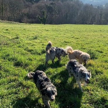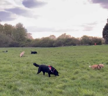 Enjoying walk with doggy friends)